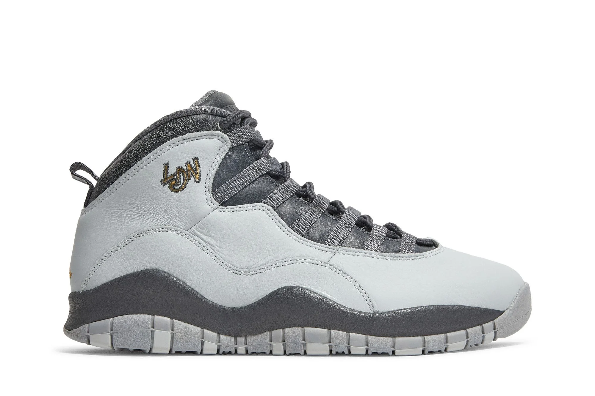 Released as part of a City Pack that featured colorways inspired by major cities around the world, the Air Jordan 10 Retro ‘London’ represents the capital of England. Its Cool Grey and dark grey upper draws from the city's gloomy, overcast skies, while metallic gold accents appear on the Jumpman branding and ‘LDN’ lettering. The bar design on the outsole spells out several of Michael Jordan’s accomplishments.
