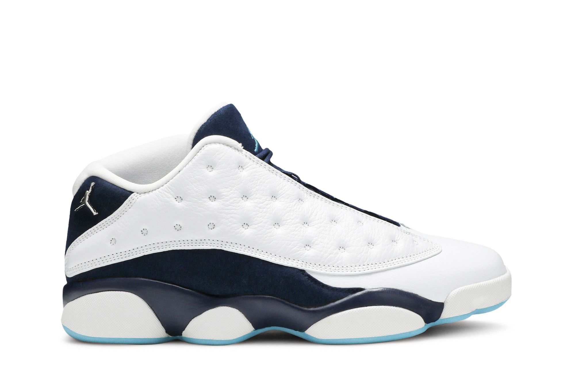 After a playing career most known for his time in Chicago, Michael Jordan returned to North Carolina as the owner of the Charlotte Hornets (who were the Bobcats at the time). This Air Jordan 13 Low ‘Hornets’ borrows obvious inspiration from the franchise, with Midnight Navy underlays and a Turquoise Blue outsole. The Turquoise Blue also appears on the tongue branding, while a metallic silver Jumpman adorns the heel. UPPER MATERIAL Leather