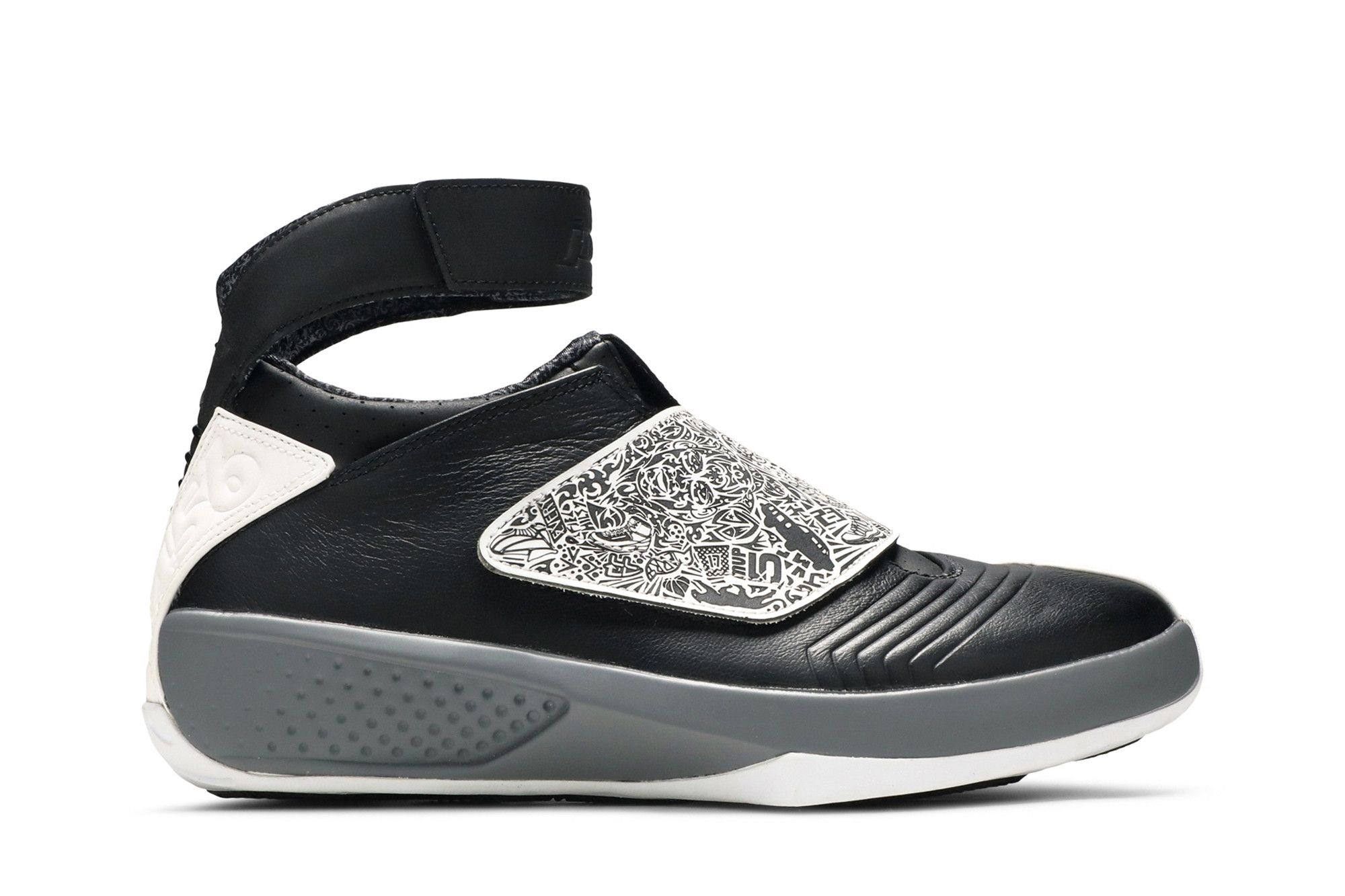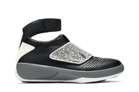 The Air Jordan 20 ‘Playoffs’ returns in retro form with a new greyscale colorway. A black premium leather upper wraps all the way up to the velcro leash, while white and Cool Grey accents line the toebox, heel, and outsole. The midfoot strap is lasered with defining Michael Jordan icons and moments from a storied career. UPPER MATERIAL Leather