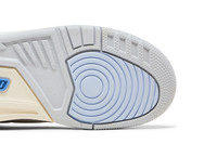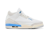Made for big kids, the Air Jordan 3 Retro GS 'Lucky Shorts' references Michael Jordan's habit of wearing UNC practice shorts beneath his regular Chicago Bulls uniform during every game. This AJ3 sports a white tumbled leather upper with Photon Dust suede overlays and molded eyelets in Carolina blue. Jumpman branding adorns the tongue, sockliner and heel tab. Lightweight cushioning arrives via a vintage off-white polyurethane midsole, featuring visible Air-sole cushioning and a splash of Legend Blue along the heel. UPPER MATERIAL Leather