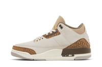 The Air Jordan 3 Retro ‘Palomino’ gives the heritage silhouette a rustic makeover highlighted by muted earth tones. The upper is crafted from off-white suede with brown elephant-print overlays at the forefoot and heel. The unique design is repeated on the eyestay, while tan perforated nubuck is utilized on the padded collar. Classic Jumpman branding embellishes the tongue and molded heel tab. An exposed Air-sole unit is nestled in the heel of the polyurethane midsole, treated to a vintage finish and supported by a durable grey rubber outsole. UPPER MATERIAL Suede
