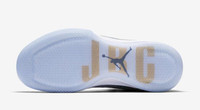 At the 2017 Jordan Brand Classic in Brooklyn, the nation’s top high school basketball players were outfitted with exclusive Jordan Brand apparel and PE footwear, which included this Air Jordan 31. Featuring a blend of glossy patent leather and Flyweave on the upper, the shoe is finished in a gradient white-grey effect with metallic gold accents on the lateral-side Jumpman and the heel clip.