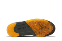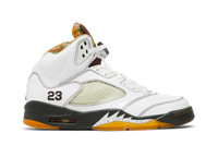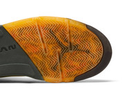 The Air Jordan 5 Retro 'Cinder' is a stellar 2009 update to the classic Air Jordan 5 colorway. The sneaker features a white patent leather upper with camo motifs that detail the sock liner and coordinate with the yellow, green, and white speckle-flamed midsole. The mid-top also boasts a contrasting brown tongue with Air Jordan branding and Jordan’s number “23” on the sides of the shoe.