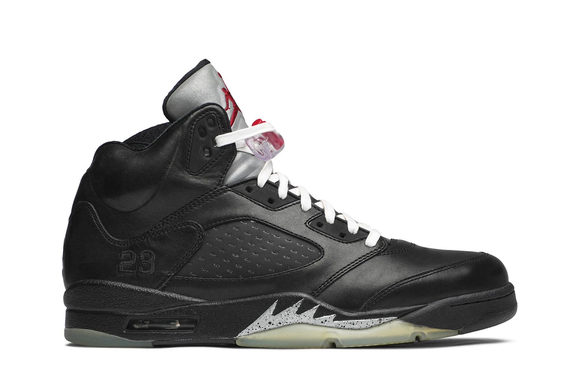 The ‘Bin23’ Jordan program looked at previously unreleased versions of models and bringing them out in a unique way. The Air Jordan 5 Retro Premio 'Bin23' features a premium black leather upper with tonal mesh windows on the sidewall for added breathability. The sneaker also sports a toggle lacing system for a personalized fit, red accents on the Jumpman logo, metallic silver accents on the midsole and tongue, and a partially encapsulated Air unit in the midsole.