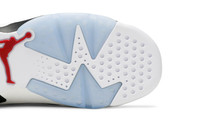 Constructed for big kids, the 2021 reissue of the Air Jordan 6 Retro GS ‘Carmine’ revives one of the mid-top’s five original colorways from 1991. The upper combines red synthetic nubuck with contrasting white leather overlays throughout the midfoot. Matching white leather is utilized on the collar and heel, embellished with Nike Air branding for an OG touch. The mid-top rides on a lightweight polyurethane midsole, enhanced with a visible Air sole unit in the heel and reinforced underfoot with an icy translucent rubber outsole. UPPER MATERIAL Leather
