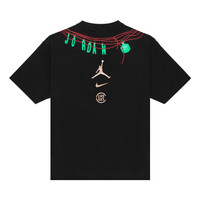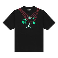 Air Jordan teamed up with CLOT on this Jade tee during the Spring/Summer 2022 season. Rendered in black, the short-sleeve T-shirt is printed with graphics that look as though red chains with green pendants are strung from the neck. Logo emblems are stamped on the back.