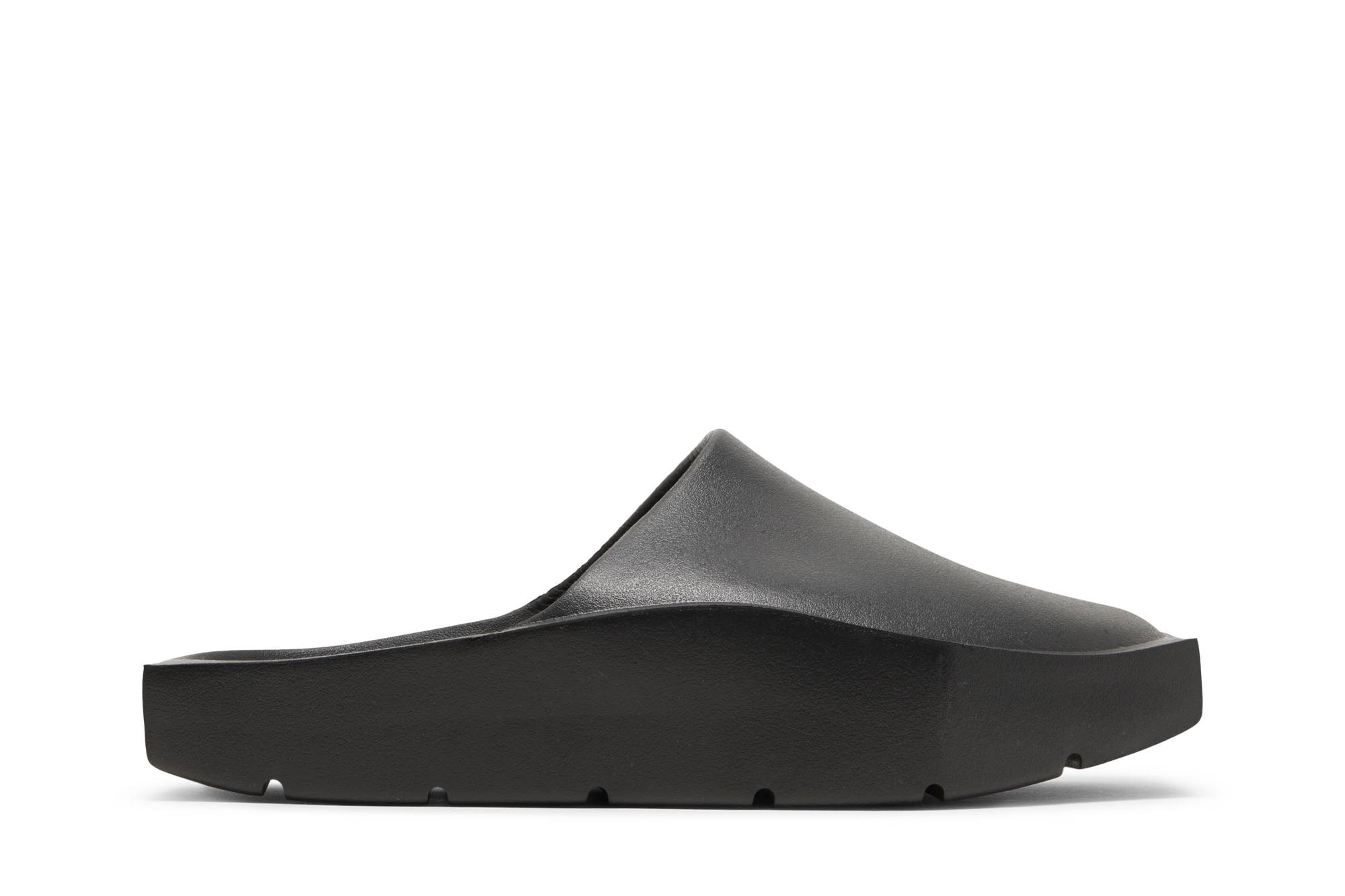 The Billie Eilish x Women’s Jordan Hex Mule ‘Black’ treats the minimalist slip-on to a sleek, monochromatic finish. A solid piece of high-density matte foam is used to construct the upper and midsole, featuring a pair of ventilation ports on the medial side for improved breathability. Branding is limited to a debossed Jumpman logo on the sculpted footbed. Underfoot, the angular outsole features flex grooves for a natural stride. UPPER MATERIAL EVA
