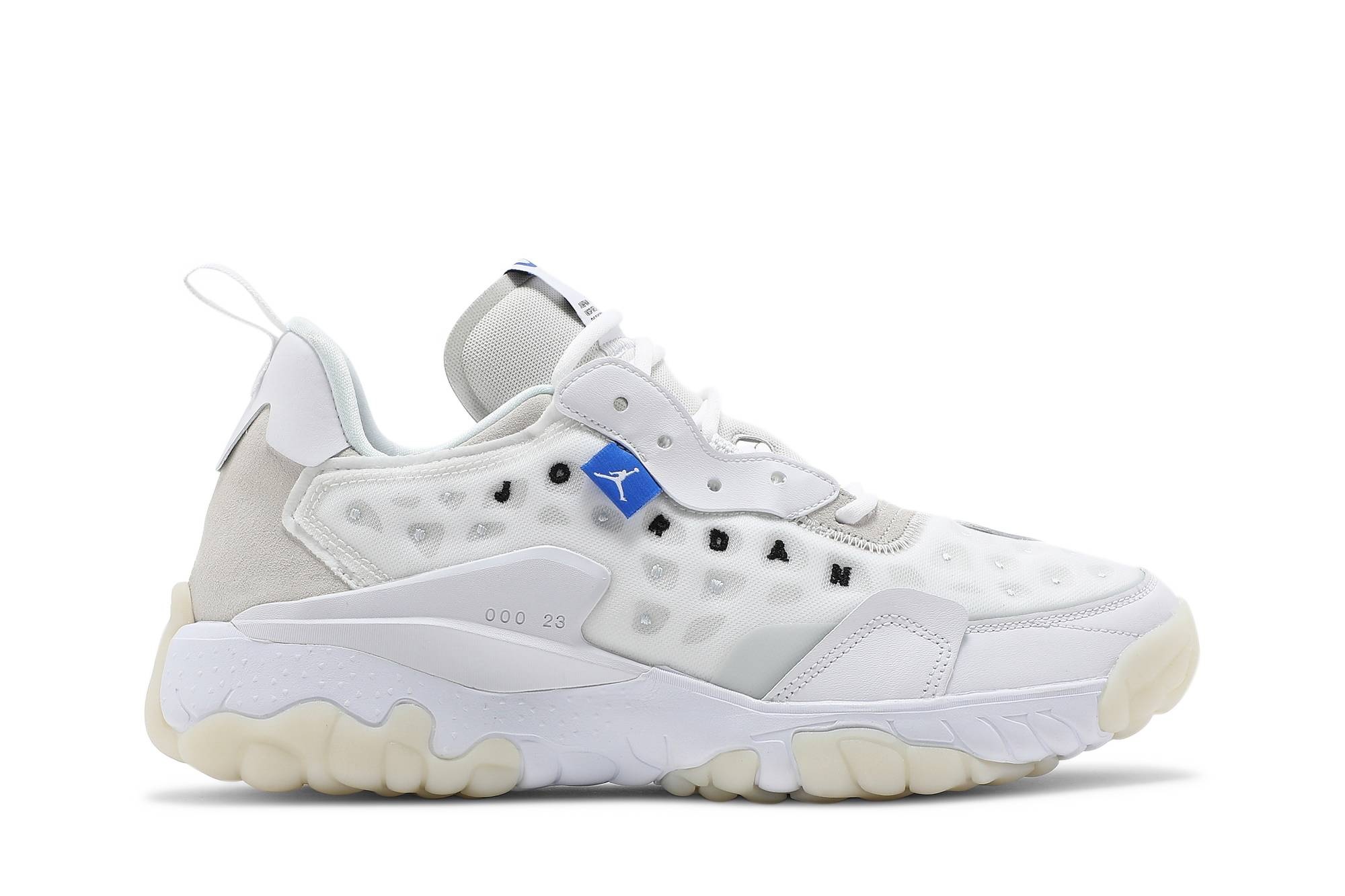 The Jordan Delta 2 ‘White Royal’ treats the lifestyle silhouette to a pristine makeover, highlighted by an upper constructed from white mesh, leather and suede. Contrasting royal blue accents settle on the woven tongue tag and sockliner, as well as a Jumpman-branded tag affixed to the lateral eyestay. A molded TPU mudguard provides improved stability and support. The low-top rides on a React foam midsole, reinforced underfoot by underfoot by translucent rubber pods. UPPER MATERIAL Synthetic
