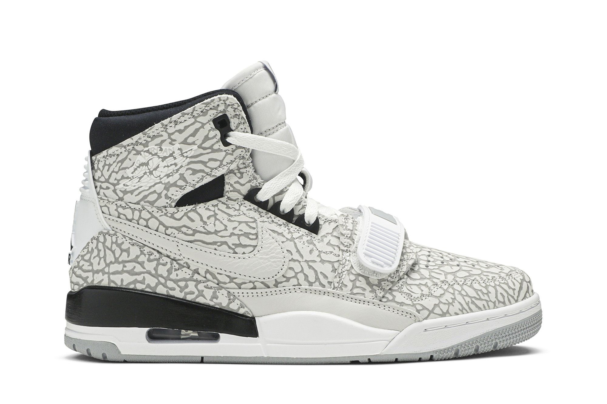 A shout-out to Chicago’s 312 area code, the Jordan Legacy 312 ‘Flip’ is inspired by the Air Jordan 1, Air Jordan 3 and the Alpha Force Low; the shoes Michael Jordan wore early in his career with the Chicago Bulls. Famed designer Don C. collaborated with Nike to design the revamped classic revealed to the shoe world in October 2018. With a grey and white debossed elephant print upper, this colorway is an homage to the Air Jordan 3 'Flip' colorway that released back in 2006.
