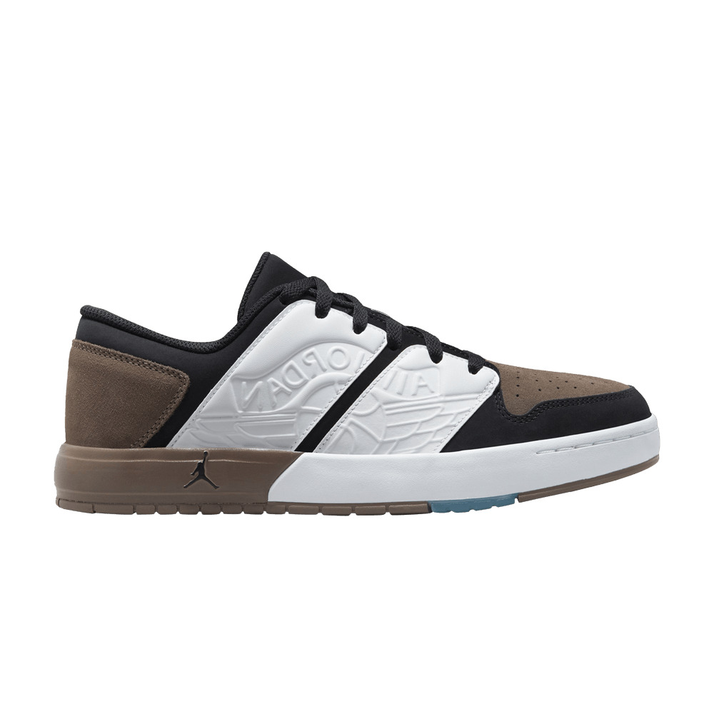 The Jordan Nu Retro 1 Low ‘Palomino’ brings earth tones to a lifestyle silhouette originally released in 2002. The upper combines a black nubuck foundation with brown suede on the toe box and heel. On the lateral side, dual white synthetic leather overlays are debossed with an oversized Wings logo. The low-top rides on a hybrid cupsole that merges white rubber sidewalls along the forefoot with brown Phylon cushioning in the heel. Underfoot, a durable rubber outsole features a traction pattern inspired by the original Air Jordan 1. UPPER MATERIAL Leather