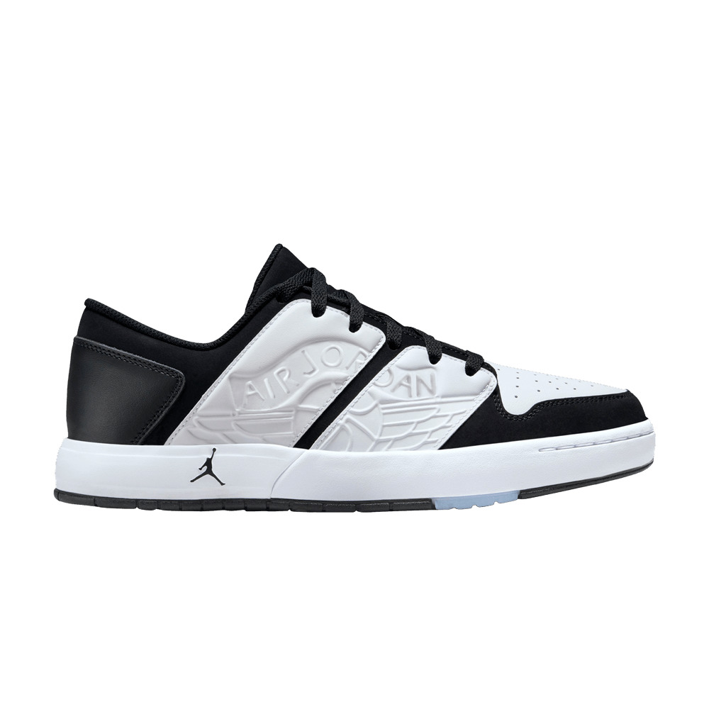 The Jordan NU Retro 1 Low ‘White Black’ brings back the 2002 lifestyle silhouette with an exploded Wings logo, debossed on a pair of white leather panels om the lateral side. They stand out against a black nubuck base, which extends from the midfoot and wraps around the white leather toe box. Anchoring the sneaker is a crisp white midsole, supported underfoot by a black rubber outsole inspired by the original Air Jordan 1. UPPER MATERIAL Leather