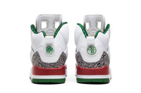 Created to commemorate Spike Lee's iconic Air Jordan commercials starring himself and Michael Jordan, the Jordan Spizike 'OG' 2014 is a mash-up of several different iterations of the sneaker's lineage. The shoe features an AJ3 midsole and outsole, AJ4 'Wings,' AJ5 netting, an AJ6 tongue, and AJ20 graphics on the lining. The white shoe is accented with black, green and red for a signature look.