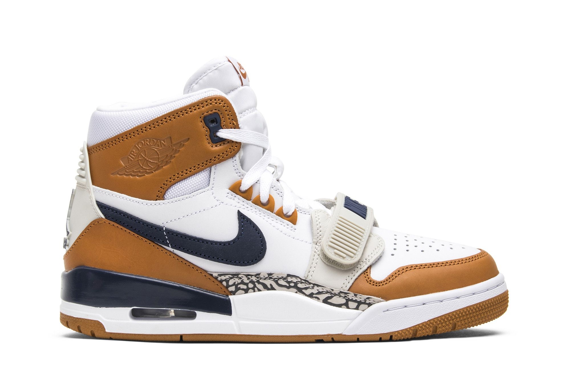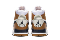 The Air Jordan Legacy 312 takes its name from Chicago’s 312 area code, while the shoe’s hybrid design is drawn from the Jordan 1, Jordan 3 and Nike Air Alpha Force Low, all models worn by basketball great Michael Jordan. The white, light brown and navy color scheme is borrowed from the ‘Medicine Ball’ colorway of the Air Trainer III, the cross-training shoe commonly associated with two-sport phenom Bo Jackson.