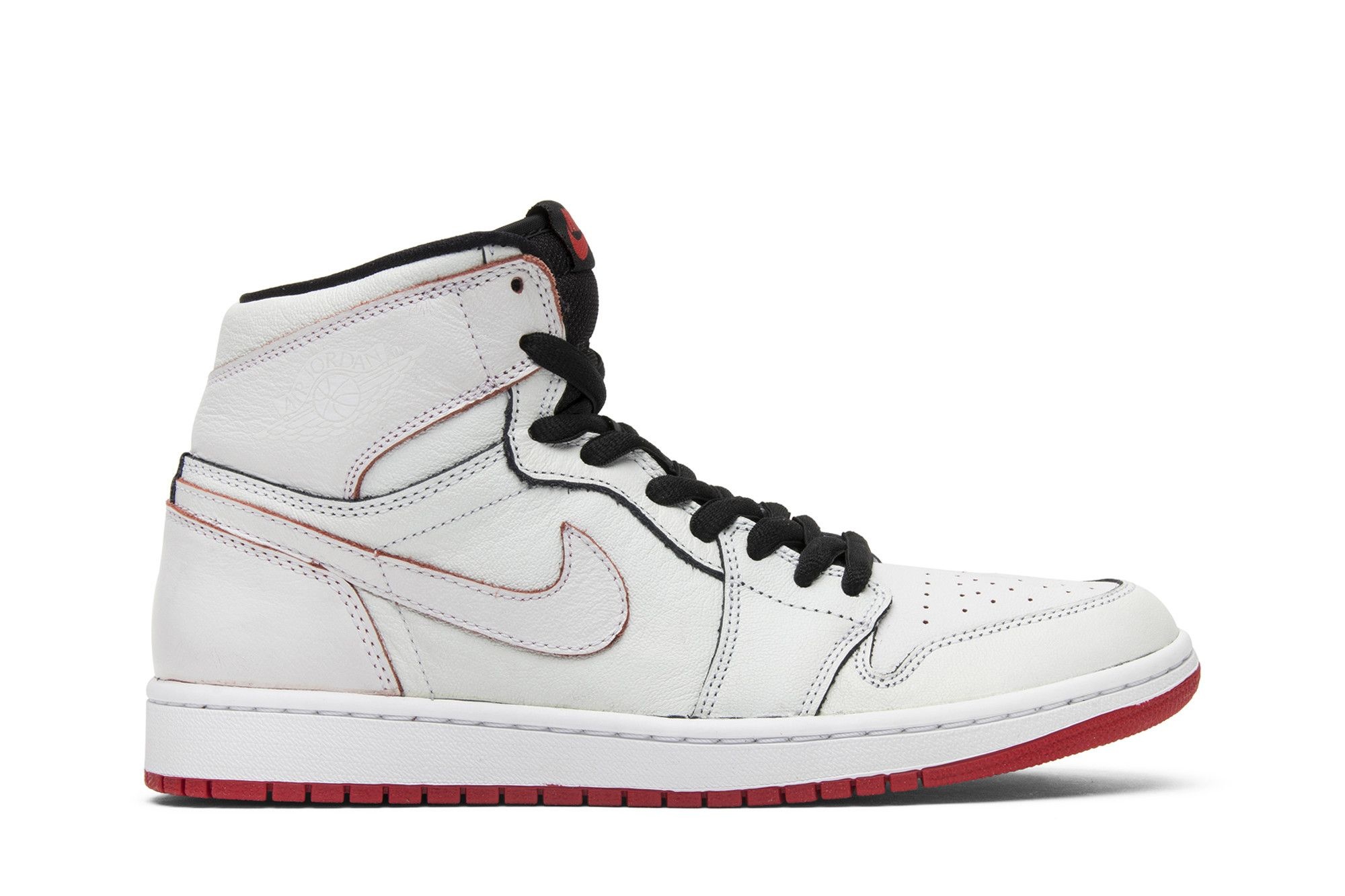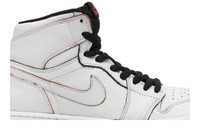 The Lance Mountain x Air Jordan 1 Retro SB QS pays homage to the 1987 skate video, The Search for Animal Chin, which showcases Pasadena Pro Skater Lance Mountain wearing an Air Jordan 1 'Royal' sneaker on his left foot and a white/Carolina blue Air Jordan 1 on his right. Back then, the Jordan was adopted by West Coast skaters for its durable leather, high ankle coverage, and Nike Air technology. To extend the life of their Jordans, skaters wore mismatched pairs, sometimes painting them the same color to recreate a uniform look. Reviving this DIY-aesthetic, the Lance Mountain x Jordan 1 SB features a black/red and a black/royal colorway with a coat of white paint that wears away with each ollie and flip trick to create a design that's unique to the individual skater. Released in limited quantities in June 2014, the sneaker dropped in a two-pack alongside a colorway given a treatment of black paint.