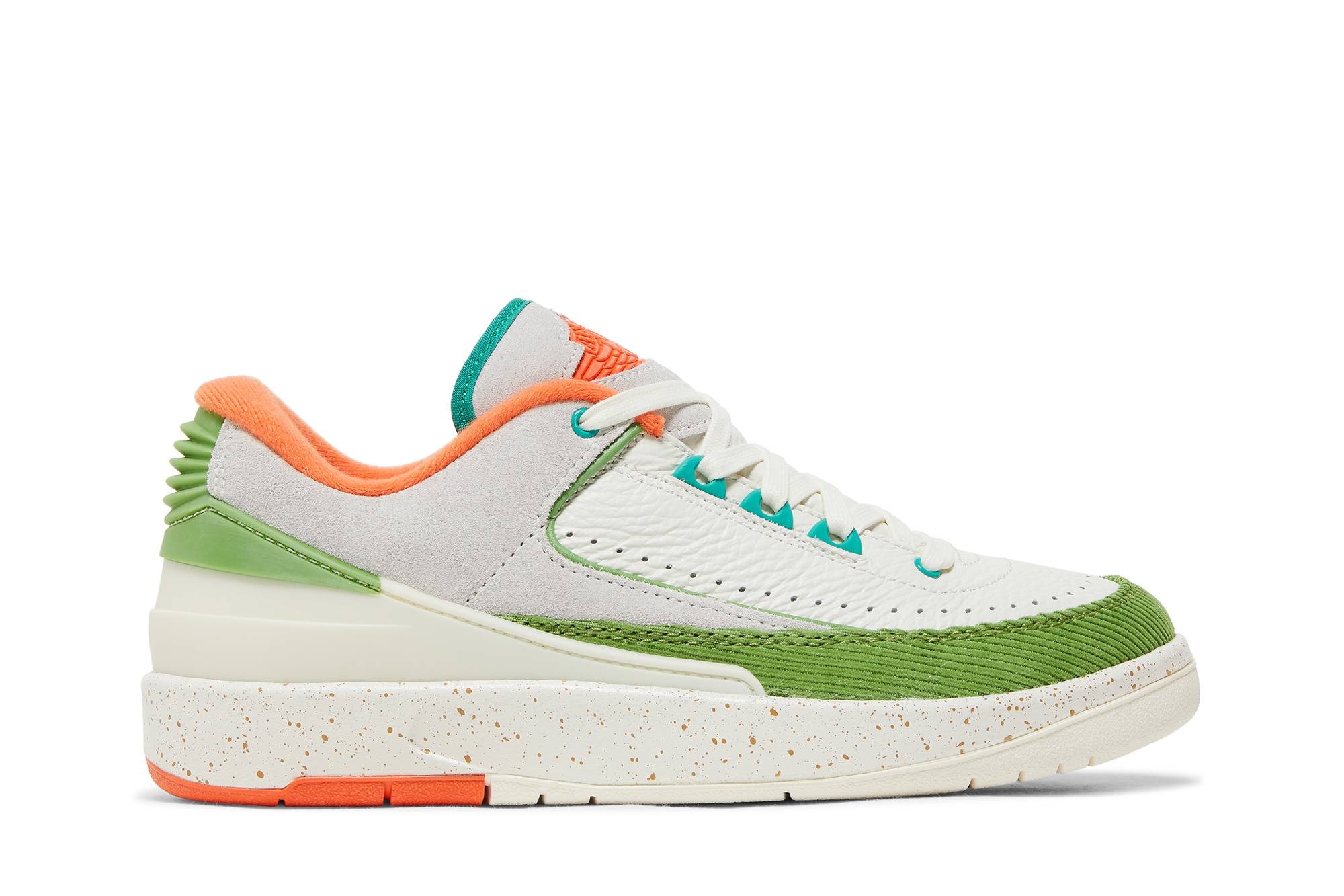 Launching as part of a collaborative capsule, the Titan x Women’s Air Jordan 2 Retro Low reunites the Manila-based retailer with Jordan Brand. The low-top takes inspiration from the Philippines’ 1954 FIBA World Championship team, and features a tropical palette designed in partnership with Chi Loyzaga-Gibbs, a multifaceted creative who’s also the granddaughter of Filipino basketball hero Carlos Loyzaga. Laces feed through molded teal eyelets to secure the upper, crafted from off-white tumbled leather with a tonal suede midfoot overlay. A toe wrap in Chlorophyll-hued corduroy is contrasted by Safety Orange accents, including a textile collar lining and a molded Wings logo on the tongue. The sneaker rides on a speckled polyurethane midsole. UPPER MATERIAL Leather