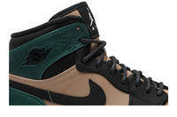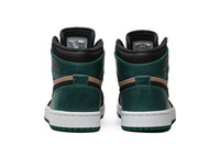 The Nike Wmns Air Jordan 1 High Premium sees the 1985 court icon through a street-style lens with a modern reconstruction. Unveiled in August 2019, this women's iteration is made of smooth leather painted in a two-tone scheme with Mystic Green highlighted on cracked ankle and heel panels. Swooshes on the sides and a Jumpman label to the tongue add the final touches. The sneaker comes with an Air-assisted midsole and contrast rubber outsole. UPPER MATERIAL Leather