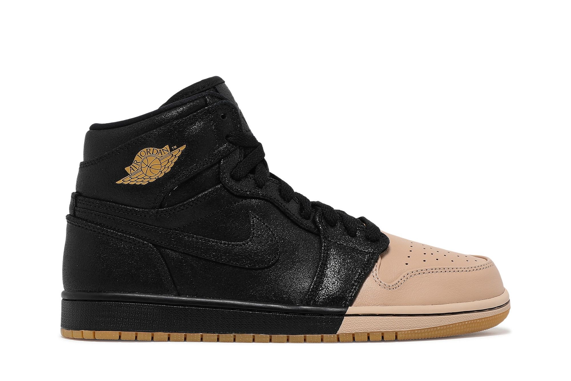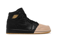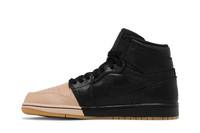 Redefining Michael Jordan’s 1985 original, the Wmns Air Jordan 1 Retro High Premium 'Dipped Toe - Black' sneaker pairs the iconic design with an unconventional aesthetic. Part of a three-sneaker collection, this fresh take on the AJ1 offers a primarily black, all-leather upper with a contrasting tan-dipped toe. The Black and Metallic Gold edition features a treated leather overlay for a shiny, premium touch on this striking sneaker. A gum rubber outsole completes the look of this women's shoe. UPPER MATERIAL Leather