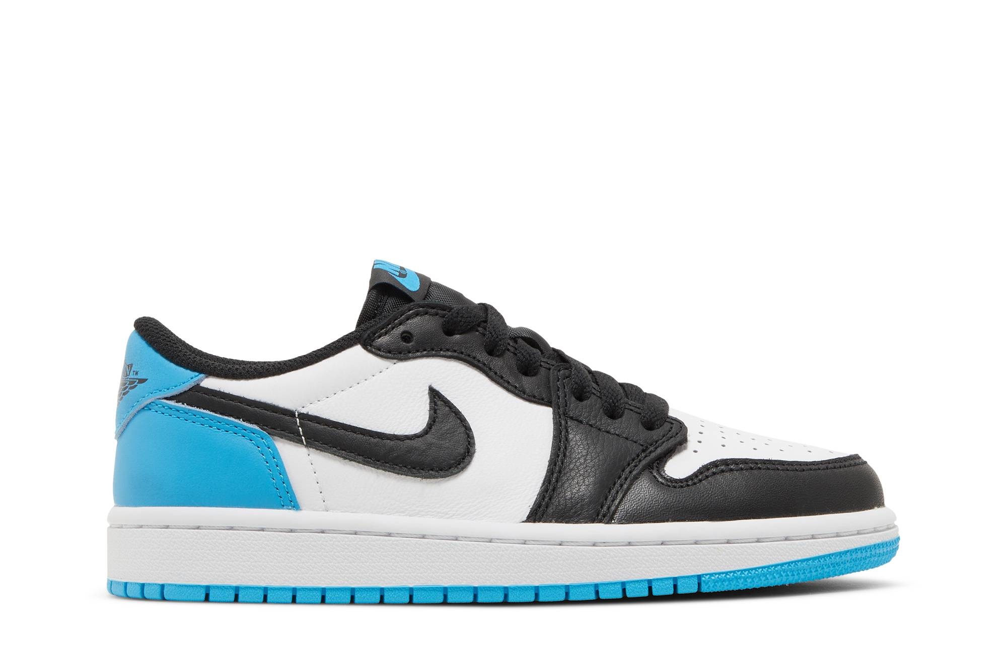 The women’s Air Jordan 1 Retro Low OG ‘UNC’ dresses the classic silhouette in a familiar color combination that nods to Michael Jordan’s time at North Carolina. The low-top dons a leather upper that contrasts a stark white base with forefoot and heel overlays in black and powder blue. A woven Nike tag embellishes the breathable nylon tongue, while an embroidered Wings logo decorates the heel tab. A sturdy rubber cupsole packs an encapsulated Air-sole unit in the heel for lightweight cushioning. UPPER MATERIAL Leather