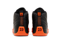 The Women’s Air Jordan 12 Retro ‘Brilliant Orange’ delivers a two-tone colorway of the legacy silhouette in celebration of the 2023 WNBA All-Star Game. The upper is crafted from black tumbled leather, accented with radiating stitched lines and pebbled forefoot overlays in a bold citrus hue. An embroidered orange Jumpman graces the tongue, while multicolor stars decorate mismatched sockliners in black and white. The Phylon midsole packs full-length Zoom Air cushioning and a carbon fiber shank plate for midfoot stability. Underfoot, the orange rubber outsole features herringbone traction pods for optimal grip. UPPER MATERIAL Leather