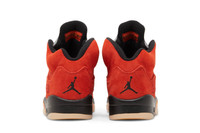 The Women’s Air Jordan 5 Retro ‘Dunk on Mars’ pays homage to Spike Lee’s alter ego, Mars Blackmon, whose planetary namesake is also known as the Red Planet. To that end, the heritage silhouette sports a scarlet suede upper, accented with translucent quarter-panel netting and contrasting black eyelets. Jumpman branding appears on the silver reflective tongue, while ‘23’ is embroidered on the lateral heel. The sneaker rides on an Air-assisted black polyurethane midsole with fiery shark-tooth detailing in orange and red. Underfoot, a yellow-tinged translucent rubber outsole features a herringbone tread for optimized grip. UPPER MATERIAL Suede