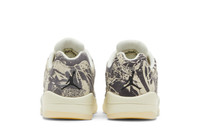 The women’s Air Jordan 5 Low ‘Expression’ transforms the classic silhouette with an abstract tan and brown print throughout the suede upper. Heritage details remain intact, including lace locks, translucent quarter panel netting, and an embroidered Jumpman atop the tongue. A second Jumpman logo decorates the heel overlay. The low-top rides on a cream-colored polyurethane midsole with a visible Air-sole heel unit and signature shark-tooth detailing outlined in metallic silver. UPPER MATERIAL Suede