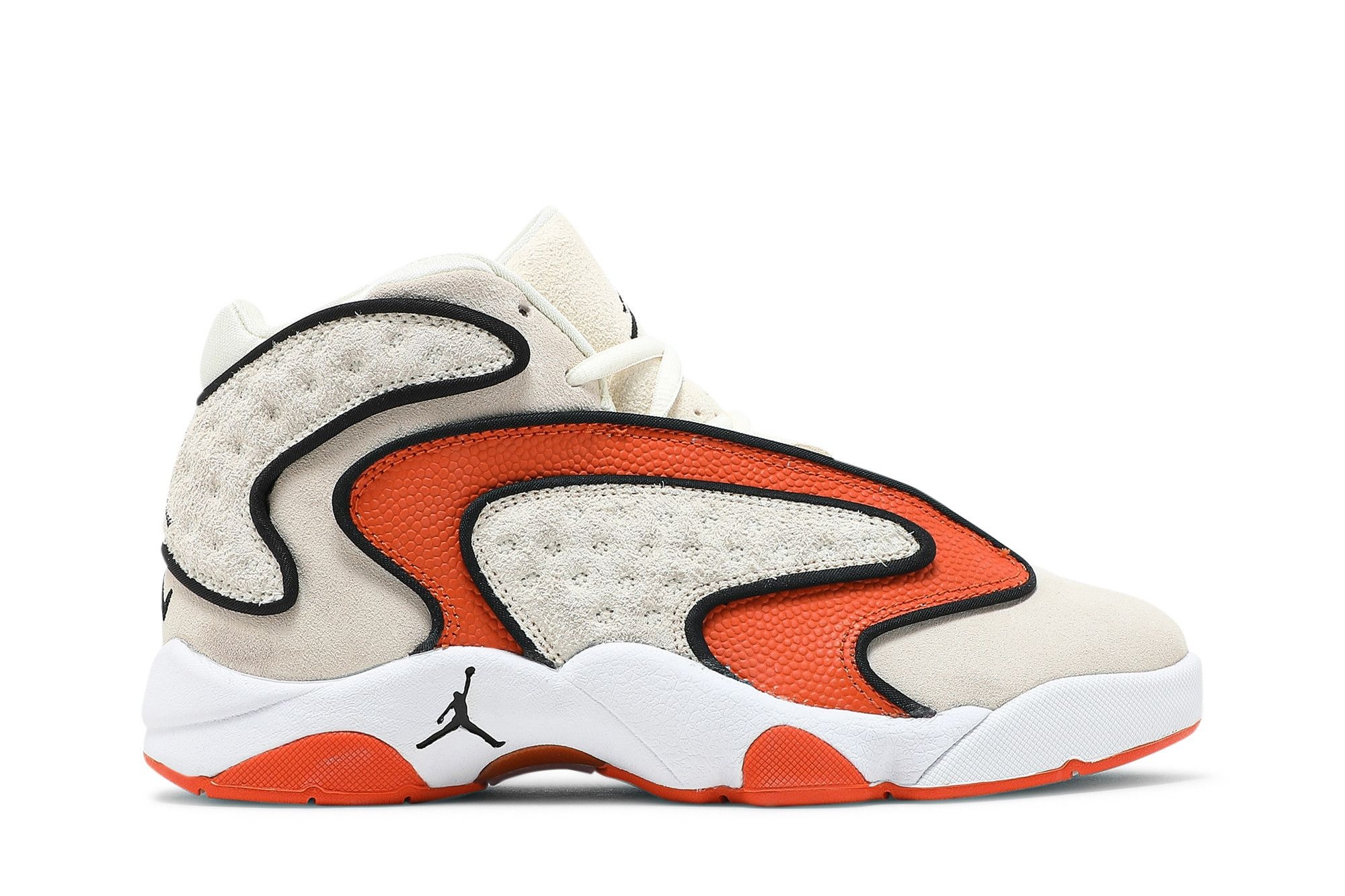 The women’s Air Jordan OG ‘Coconut Milk’ brings back the first ever Jordan silhouette created exclusively for women. Inspired by the Air Jordan 13, the mid-top features a mid-cut collar with dimpled suede overlays surrounded by black piping. The rest of the upper features smooth tan suede with a layer of orange pebbled leather that wraps over the midfoot. Black Jumpman branding is embroidered on the tongue and heel, the latter appended with a matching black ‘W.’ The sneaker rests on a Phylon midsole, fitted with a Zoom Air unit in the heel and reinforced by a herringbone-traction rubber outsole.
