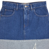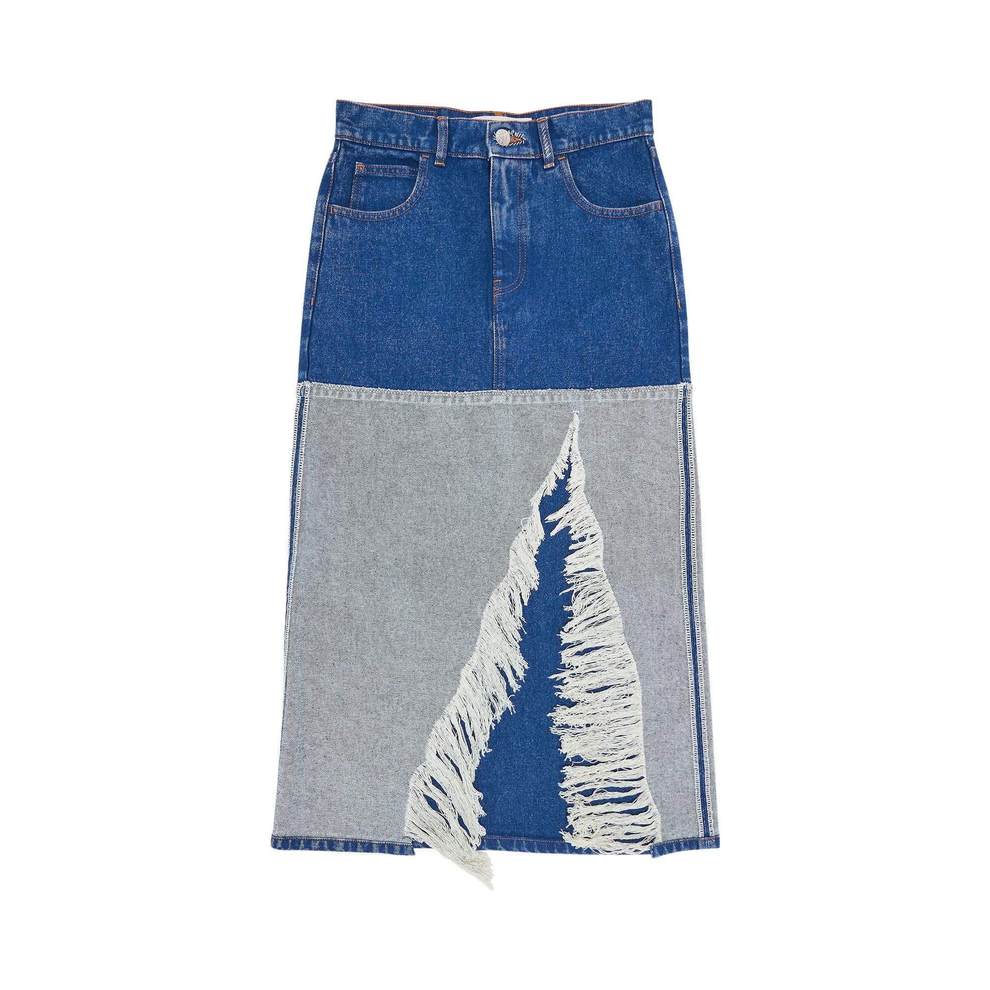 BLUE ORGANIC DENIM TWO-TONE MIDI SKIRT