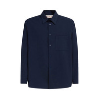 DEEP BLUE TROPICAL WOOL LONG-SLEEVED SHIRT