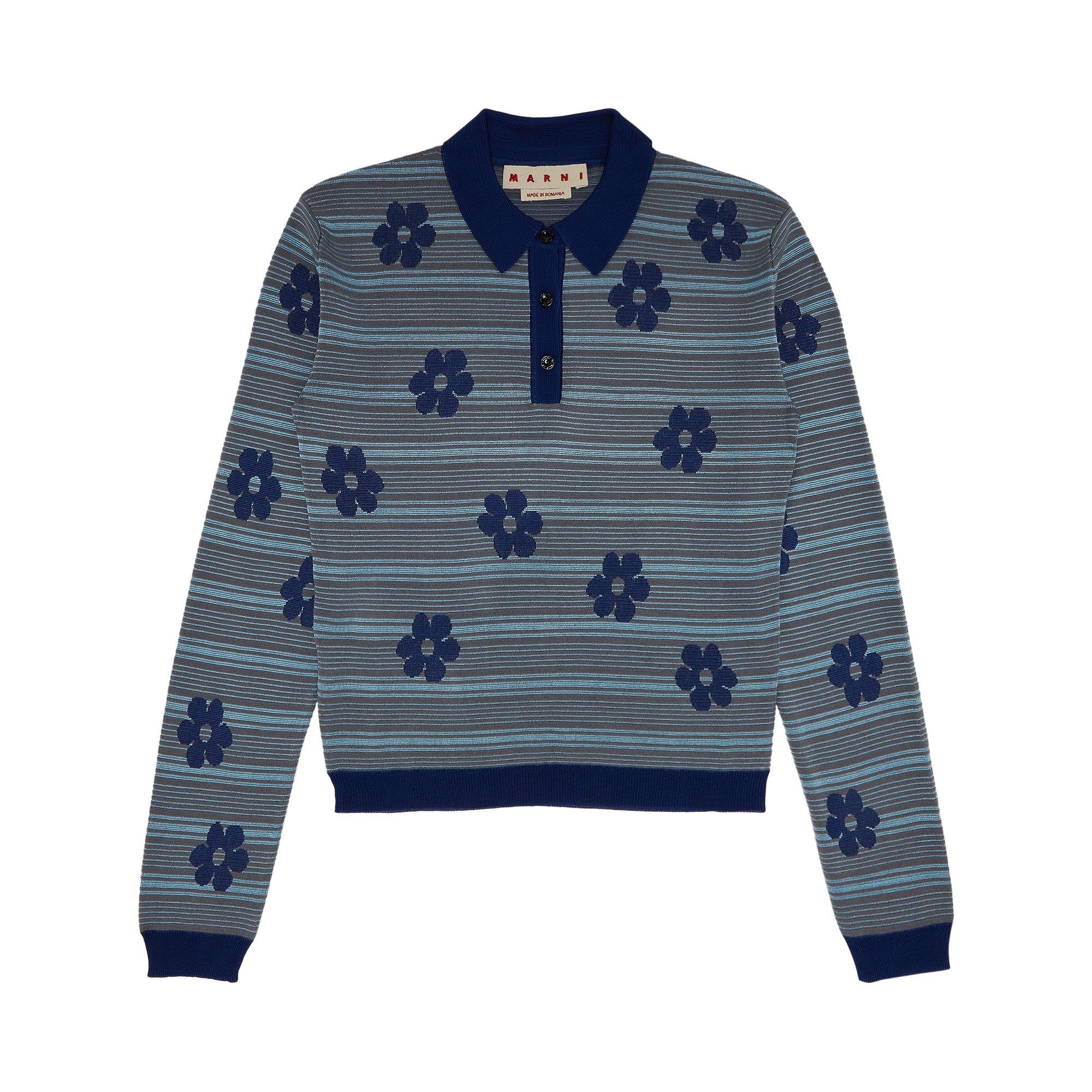 Marni Striped Flowers Long-Sleeve Polo Neck 'Mazarine Blue'