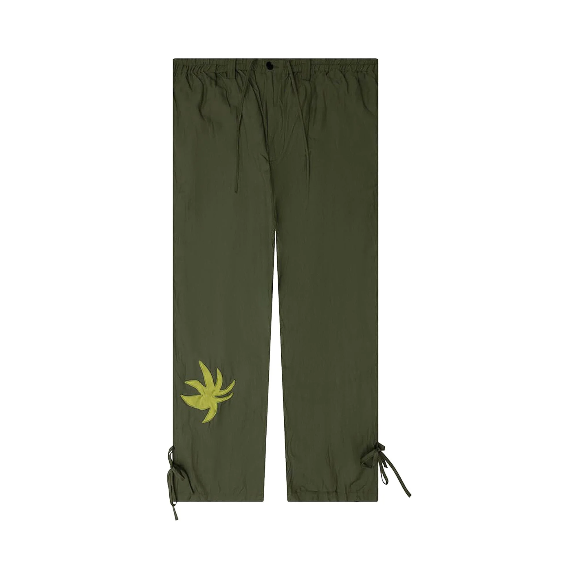 MARNI X NO VACANCY INN - GREEN GABARDINE PANTS WITH EMBROIDERY