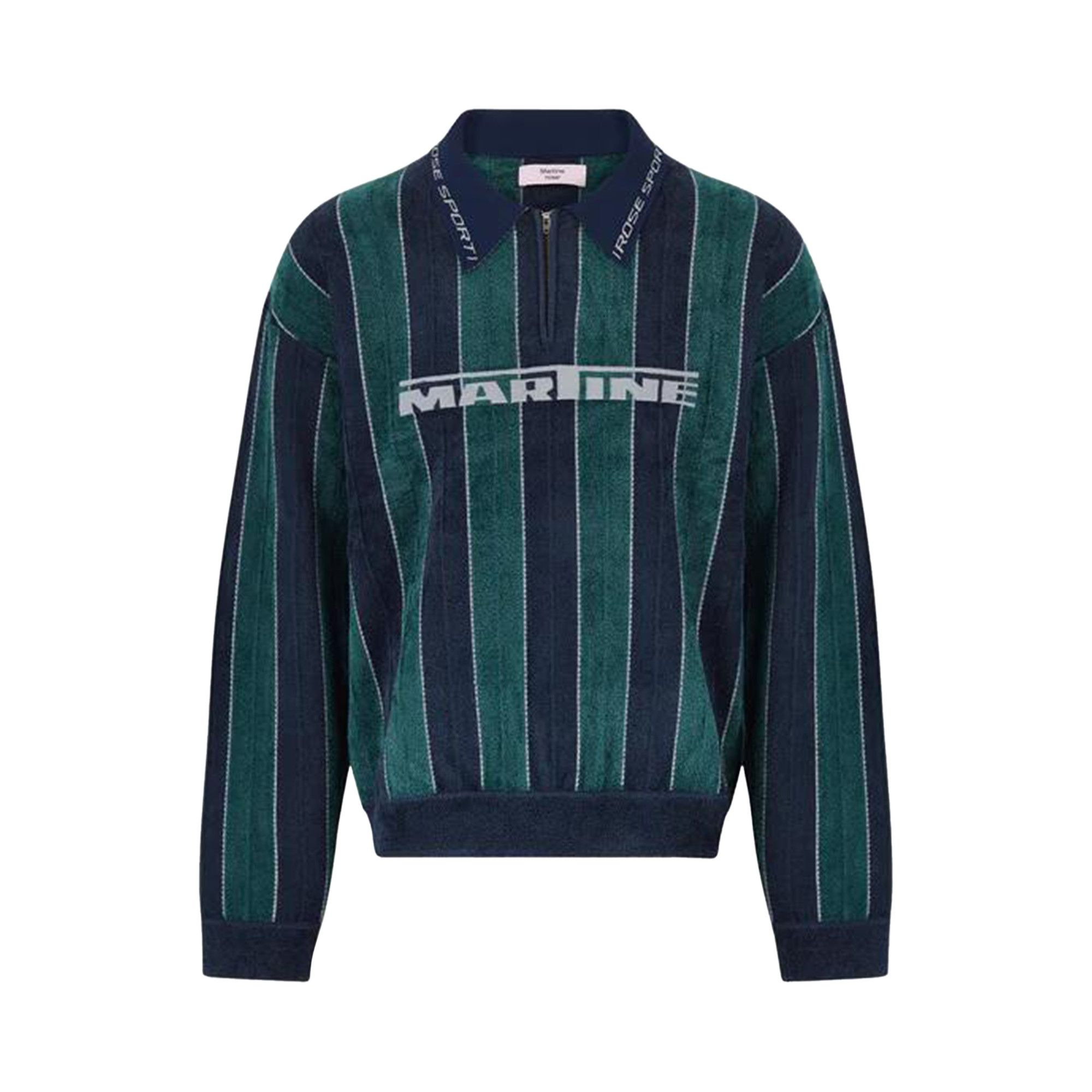 green navy striped pattern polo neck half zip fastening long sleeves ribbed cuffs 'marine' logo - Designer Style ID: 981YA20407 GRN