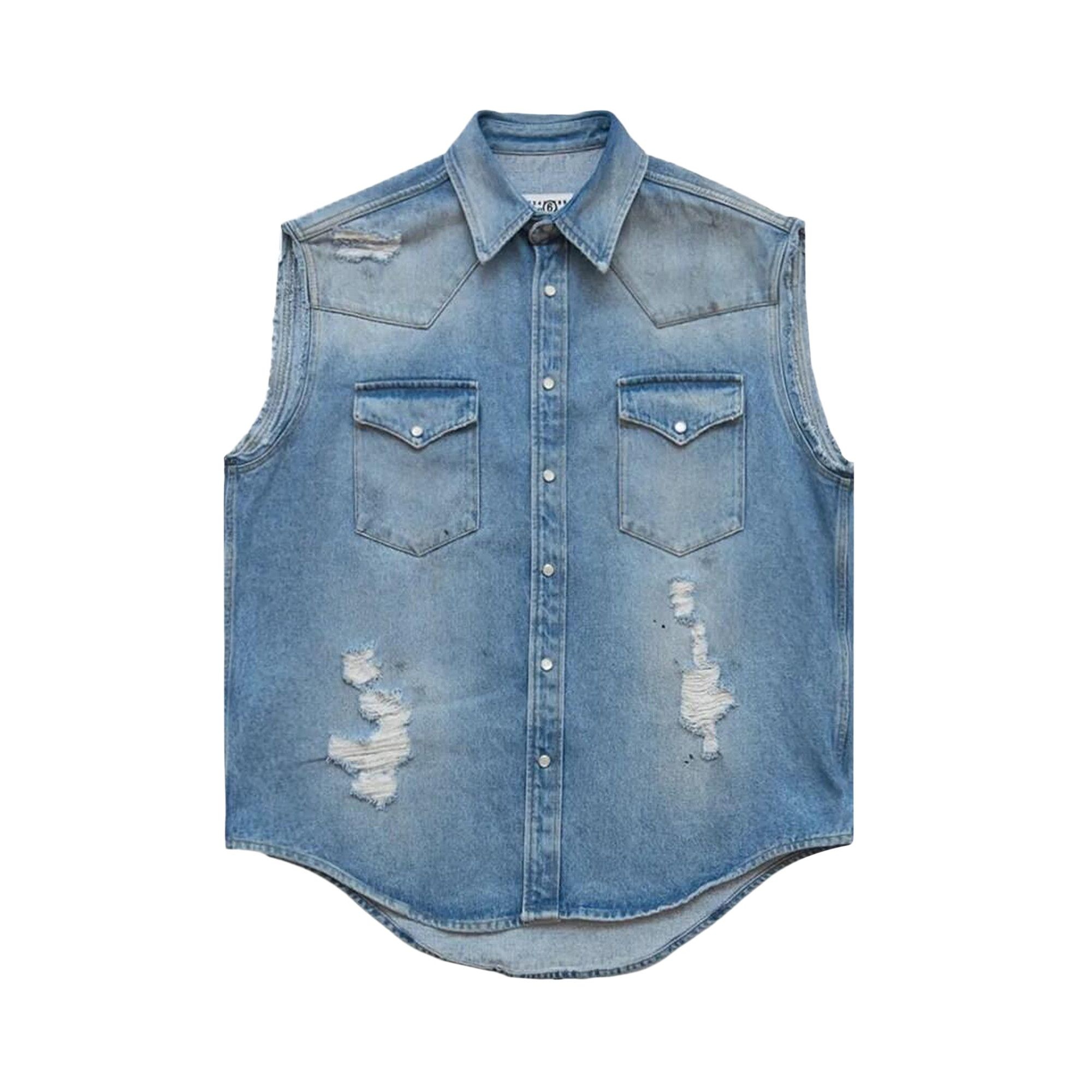 MM6 Maison Margiela Sleeveless Distressed Denim Shirt 'Blue'