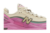The New Balance 1000 'Tan Pink' is crafted from ripstop with leather and suede overlays, featuring a top half in green and tan. The lower portion is suffused in a vivid pink hue that extends into a lightweight polyurethane midsole with ABZORB cushioning in the forefoot and heel. A decoupled black rubber outsole provides durable traction, while New Balance's Stability Web offers a blend of torsional rigidity and midfoot support. UPPER MATERIAL Mesh