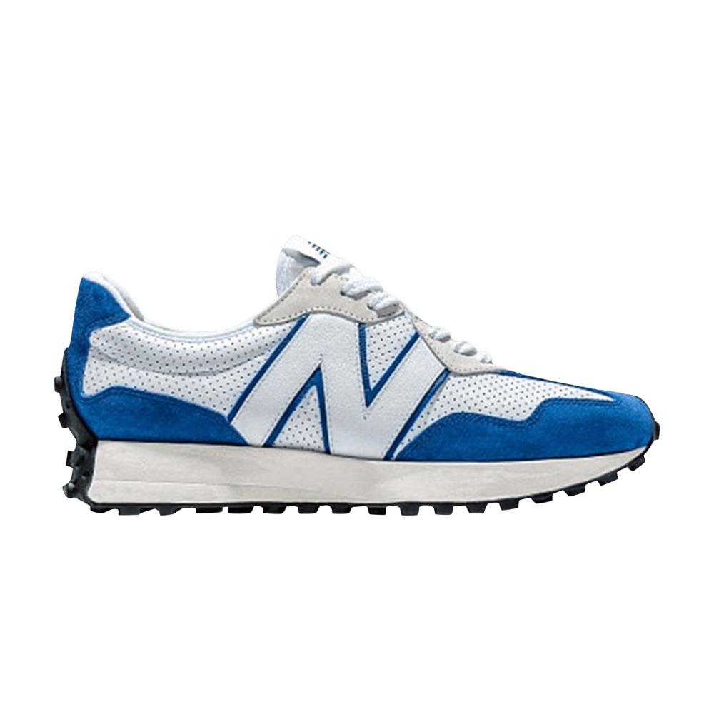 Constituting one-third of the brand’s ‘Primary Pack,’ the New Balance 327 ‘Blue’ dresses the retro-inspired silhouette in a simplistic two-tone color scheme. White perforated leather makes up the bulk of the upper, which is reinforced with blue pigskin suede overlays at the toe and heel. An additional pop of blue borders the oversized ‘N’ that adorns the sneaker’s lateral side panel. A vintage off-white finish is applied to the EVA midsole, supported underfoot by a studded rubber outsole. UPPER MATERIAL Suede