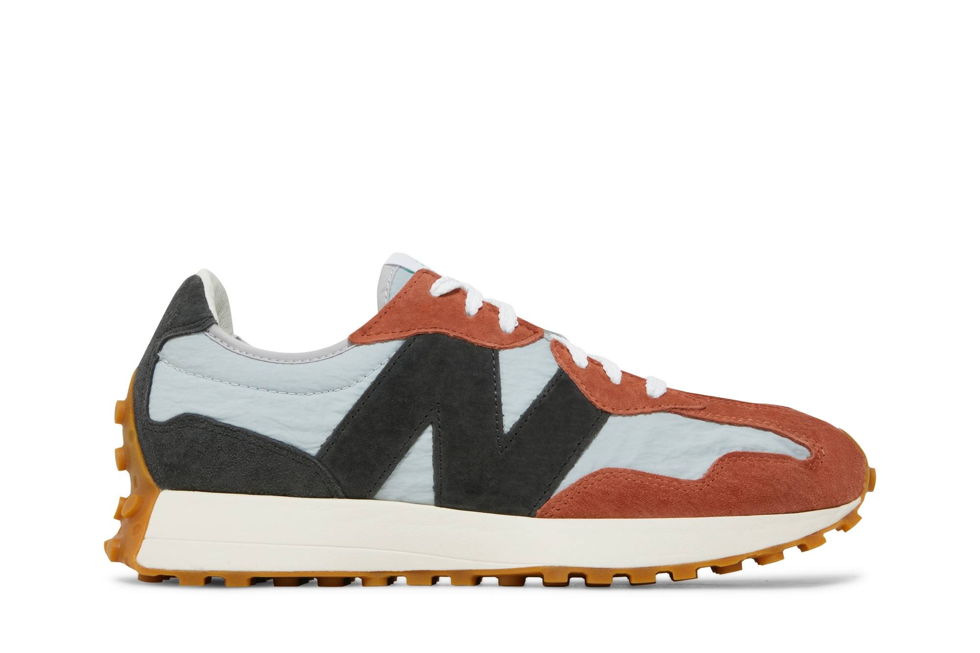 Drawing inspiration from vintage running shoes from the ‘70s, the New Balance 327 ‘Rust Brown’ showcases a bold ‘N’ logo on sneaker’s lateral quarter panel — an exaggerated detail that contrasts the sneaker’s heritage aesthetic. The nylon and suede upper rides on a lightweight EVA midsole, reinforced by a gum rubber outsole that extends up and over the toe and heel for added traction and durability.