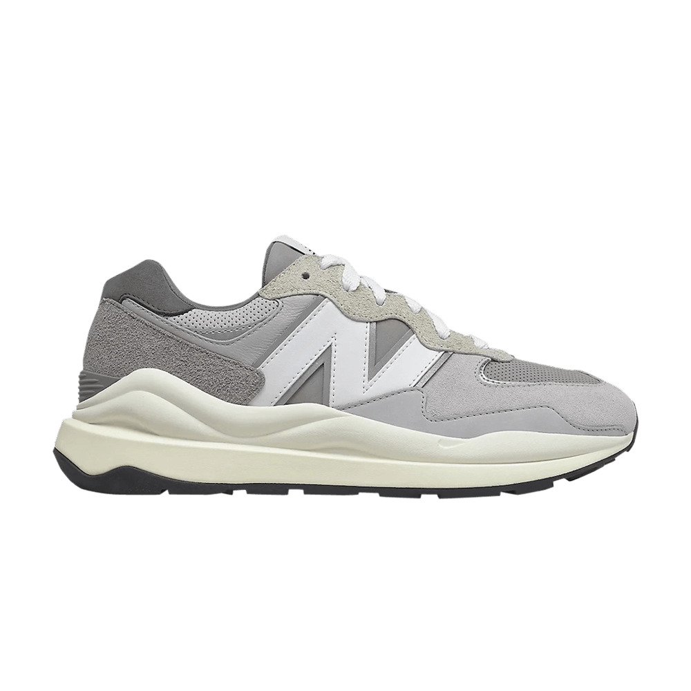 The New Balance 57/40 ‘Grey Day’ tempers its bold lines and outsized proportions with an understated neutral color scheme. Microperforated leather is utilized on the toe box and collar, while the rest of the upper is constructed from grey suede overlays in varying shades and textures. An enlarged ‘N’ logo in white leather adorns each of the sneaker’s side panels with reflective trim. The lifestyle runner is mounted on a stacked ENCAP midsole with sculpted cream-colored sidewalls. UPPER MATERIAL Mesh