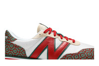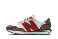 The Casablanca x New Balance 237 ‘Red Monogram’ reunites the partner brands on a second colorway of a lifestyle silhouette based on ‘70s running heritage. The upper is crafted from perforated white leather with textile overlays inspired by Casablanca’s monogram jacquard. A dual-layered ‘N’ logo dominates the sneaker’s quarter panels in red and green, while a laurel print decorates a woven tag that runs down the length of the tongue. The sneaker is mounted on an EVA midsole with a green rubber outsole underfoot. UPPER MATERIAL Leather