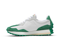 Making its worldwide debut at the French menswear label’s runway show at Paris Fashion Week in January 2020, the Casablanca x New Balance 327 ‘Idealist’ makes use of a new silhouette developed specifically for the collaboration. The build combines a perforated white leather base with green suede overlays and an oversized white leather ‘N’ logo outlined in green. This pair was accompanied by an additional colorway in white and orange.