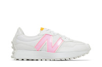 Designed for the American tennis star, the Coco Gauff x New Balance women’s 327 ‘White Impulse’ draws inspiration from colorful ‘90s style. The upper features white leather overlays and split color blocking: the lateral side is rendered in white textile with an oversized pink ‘N’ logo, while the opposite side showcases a pair of decorative gold chains against a crimson textile backdrop. Lightweight cushioning arrives via a solid white EVA midsole, supported underfoot by a studded rubber outsole. UPPER MATERIAL Synthetic
