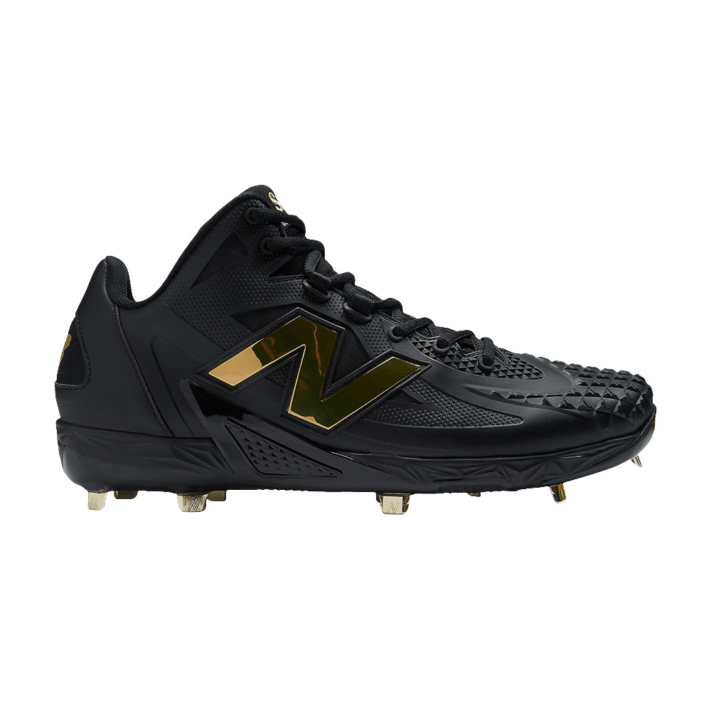 The New Balance Ohtani 1 'Black Metallic Gold' showcases gilded accents on Shohei Ohtani's debut signature cleat. A metallic gold 'N' logo decorates the blacked-out upper, featuring breathable mesh construction with durable overlays in cast polyurethane. Covering the forefoot overlay, a raised triangular pattern takes inspiration from the ceilings of some NPB ballparks in Japan. New Balance's FuelCell foam midsole offers lightweight cushioning with every step. Underfoot, the outsole utilizes metallic gold studs that are approximately 2mm shorter than traditional baseball spikes, offering superior traction without sacrificing ground feel. UPPER MATERIAL TPU