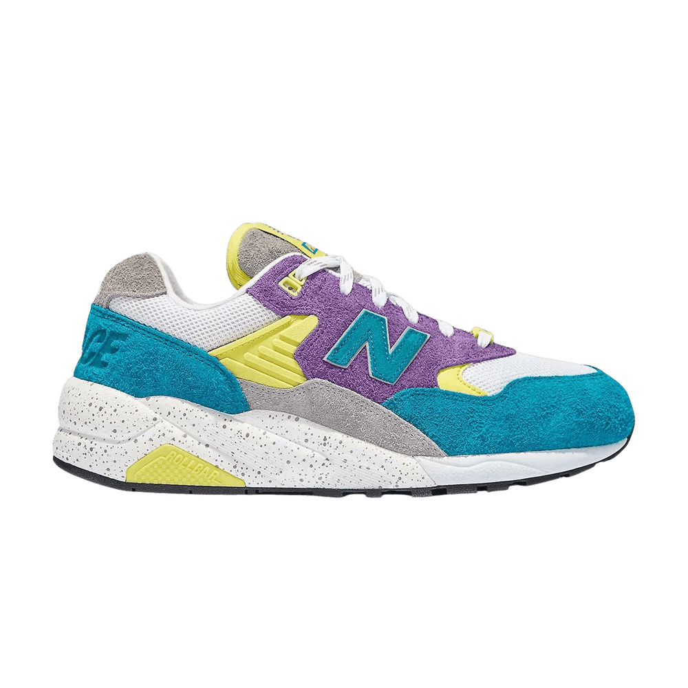 The Palace x New Balance 580 ‘Shaded Spruce Pansy’ introduces the debut collaboration between partner brands hailing from London and Boston. Leaning into the retro runner’s ‘90s roots, the upper showcases vivid accents, highlighted by a white mesh upper with hairy suede overlays in purple and teal. The latter hue is repeated on the signature ‘N’ logo, while contrasting pops of yellow land on quarter-panel detailing and a dual-branded tongue tag. The Palace logo decorates the back heel and pair of molded lace dubrae. The sneaker rides on a speckled C-CAP midsole, fitted with a TPU ROLLBAR for improved stability. UPPER MATERIAL Suede