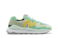 Launching as part of a sunny capsule collection with the LA-based fashion brand, the STAUD x New Balance 57/40 ‘Agave Green’ treats the lifestyle runner to a pastel makeover. Varying bright green shades are executed on the upper, crafted from breathable mesh with suede overlays. An oversized ‘N’ logo in vivid yellow delivers a contrasting pop of color. Dual NB and STAUD branding decorates the sockliner and woven tongue tag. Lightweight cushioning is provided by an EVA midsole, supported underfoot by an off road-inspired rubber outsole. UPPER MATERIAL Synthetic