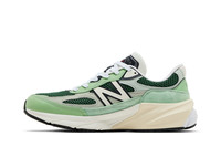 The New Balance 990v6 Made in USA 'Avocado Natural Mint' features open-cell mesh in a dark emerald hue. Mint green suede is utilized on the eyestay and mudguard, while a more subdued shade of green distinguishes synthetic leather overlays that reinforce the midfoot. Branding elements include a cropped 'N' logo and 'Made in USA' stamped on the TPU heel tab. Anchoring the sneaker is an ENCAP midsole, built with FuelCell foam and a polyurethane rim. UPPER MATERIAL Suede
