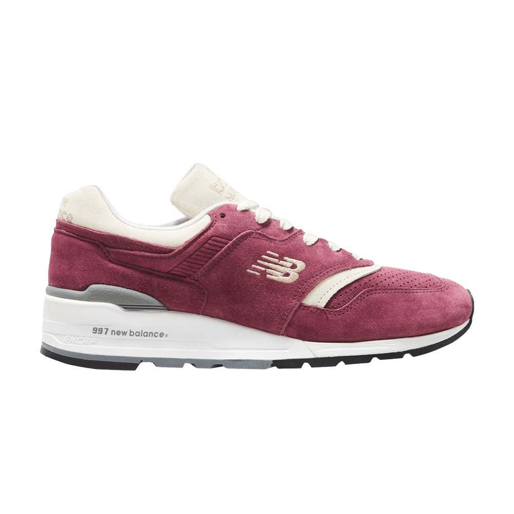 The Todd Snyder x New Balance 997 Made in USA ‘Burgundy’ is taken from the three-piece ‘Triborough’ collection, developed in partnership with the American menswear designer. The retro runner features a simple two-tone palette, highlighted by a rich burgundy finish on the suede upper. Contrasting cream-hued accents include an embroidered ‘Flying NB’ logo on the quarter panel, bringing back the branding element that was featured — and quickly discarded — on the original 1991 release. UPPER MATERIAL Suede