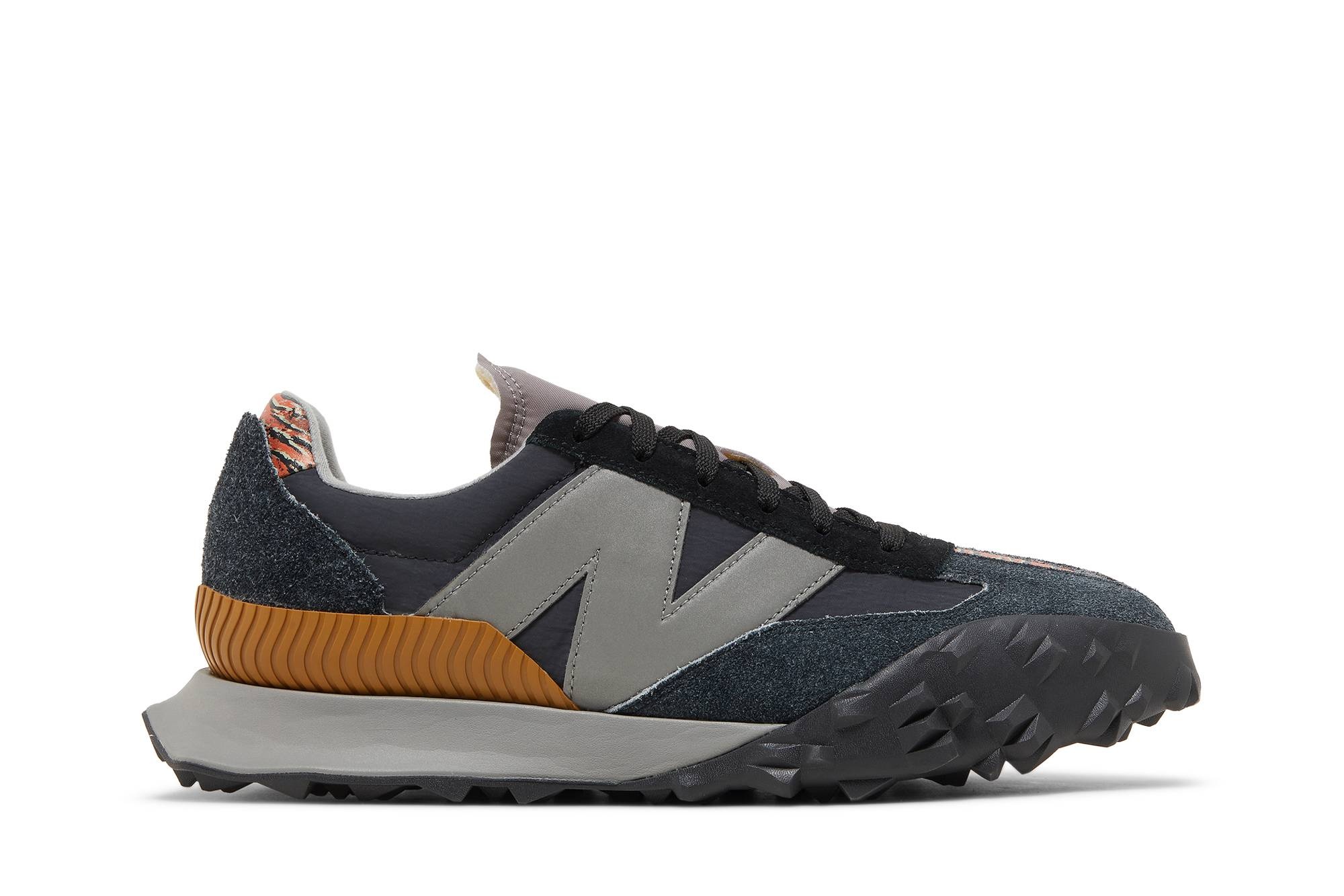 The New Balance XC-72 ‘Chinese New Year’ rings in the year of the tiger with a unique design featuring neutral earth tones and vibrant graphics. The latter takes the form of a tiger camo print in bright crimson on the heel tab and toe box. The rest of the upper pairs mismatched paneling in beige mesh and charcoal textile, the latter accented with a reflective ‘N’ logo in light grey. A lightweight EVA midsole is wrapped up by a vertically split rubber outsole, highlighted by the XC15’s ‘gripper’ tread and the 375’s studded pattern. UPPER MATERIAL Suede