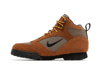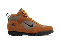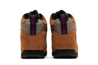 The Nike ACG Torre Mid Waterproof 'Pecan' brings back a rugged hiking boot originally released in 1995. Secured with yellow rope laces, the weatherproof upper combines grey mesh with hairy suede overlays in a light brown hue. The neutral color scheme is disrupted by contrasting Red Plum accents, which include the ACG logo embroidered on the lateral heel and a webbing pull loop affixed to the heel. A black rubber outsole provides durable traction underfoot. UPPER MATERIAL Suede