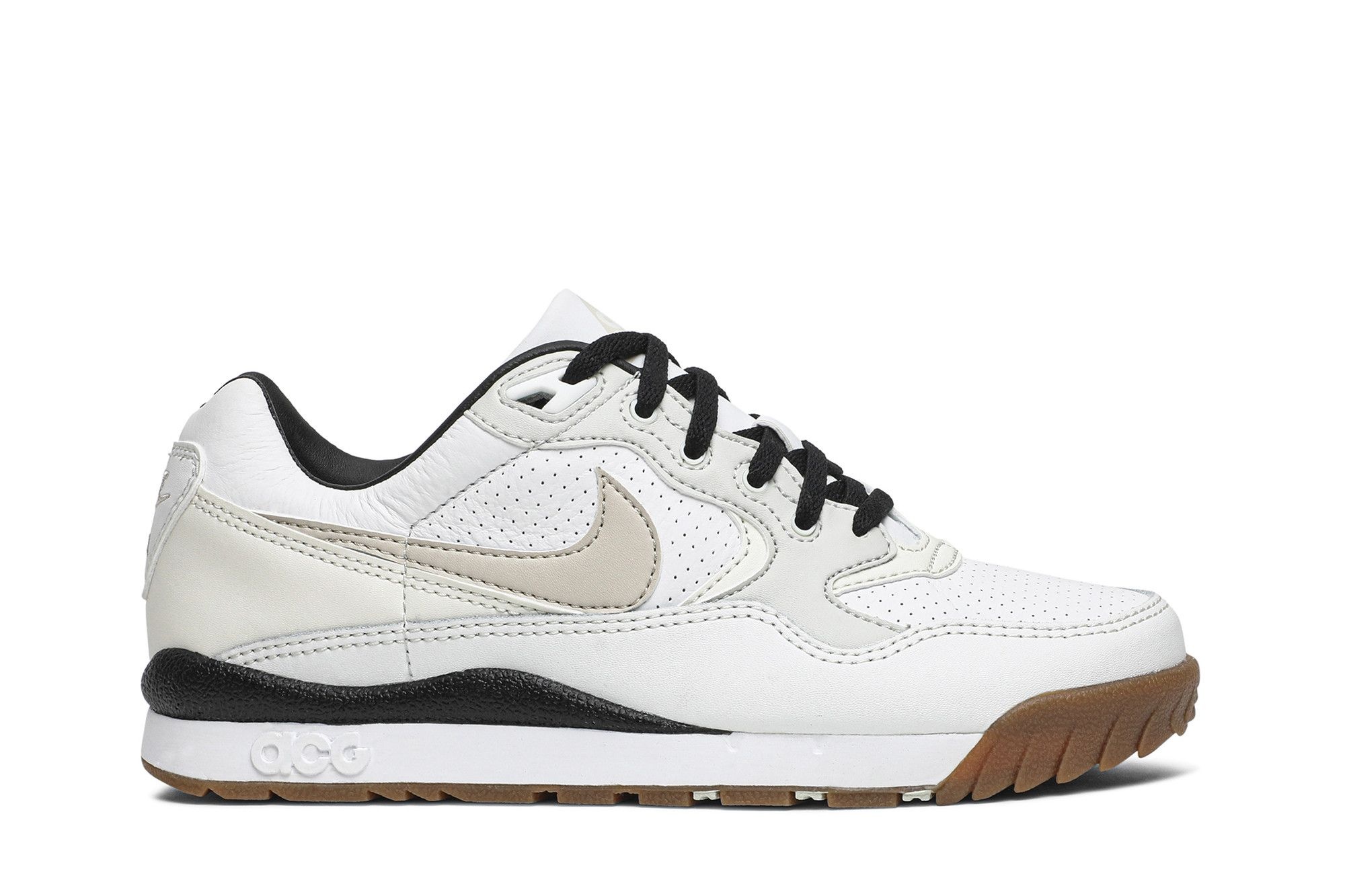 Released May 2019, the off-road runner from 1989 goes white and black in the ACG Wildwood 'White Gum', offering a classic look from Nike's ACG collection. Rich white leather defines the Pegasus-influenced design, and wavy heel tooling reminiscent of the Nike Air Escape offers more stability. Perforated side walls keep the foot ventilated, and the hoops-inspired toe box and mudguard are sturdy and supportive. A foam midsole and durable gum-rubber outsole cushion and protect on all terrain.