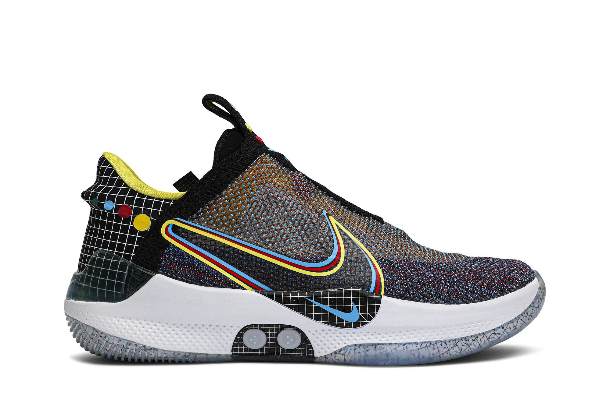 The Nike Adapt BB is a self-lacing sneaker made specifically for the hardwood. A follow-up to the original released earlier in 2019, this 'Multi-Color' edition highlights the revolutionary technology with a new palette. It features a Flyknit upper with a melange of colors and a QuadFit mesh inner layer. The shoe is detailed with a grid motif, radioactive and voltage emblems and a splatter-printed Cushlon sole visible through translucent tread. Its power-lacing technology is adjustable using the buttons on the sole or via the companion smartphone app. UPPER MATERIAL Flyklnit