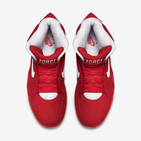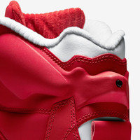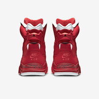 The Nike Air Command Force represents the bold basketball shoe designs of the 90s with its extra-high-top offering. Part of the Air Force lineage, the shoe became one of only a few Nike options to utilize inflatable Air-Fit technology, which allows the wearer to customize the fit to their liking. Speckled detailing appears on the heel counter while University Red covers most of the shoe along with white Swooshes and accents.