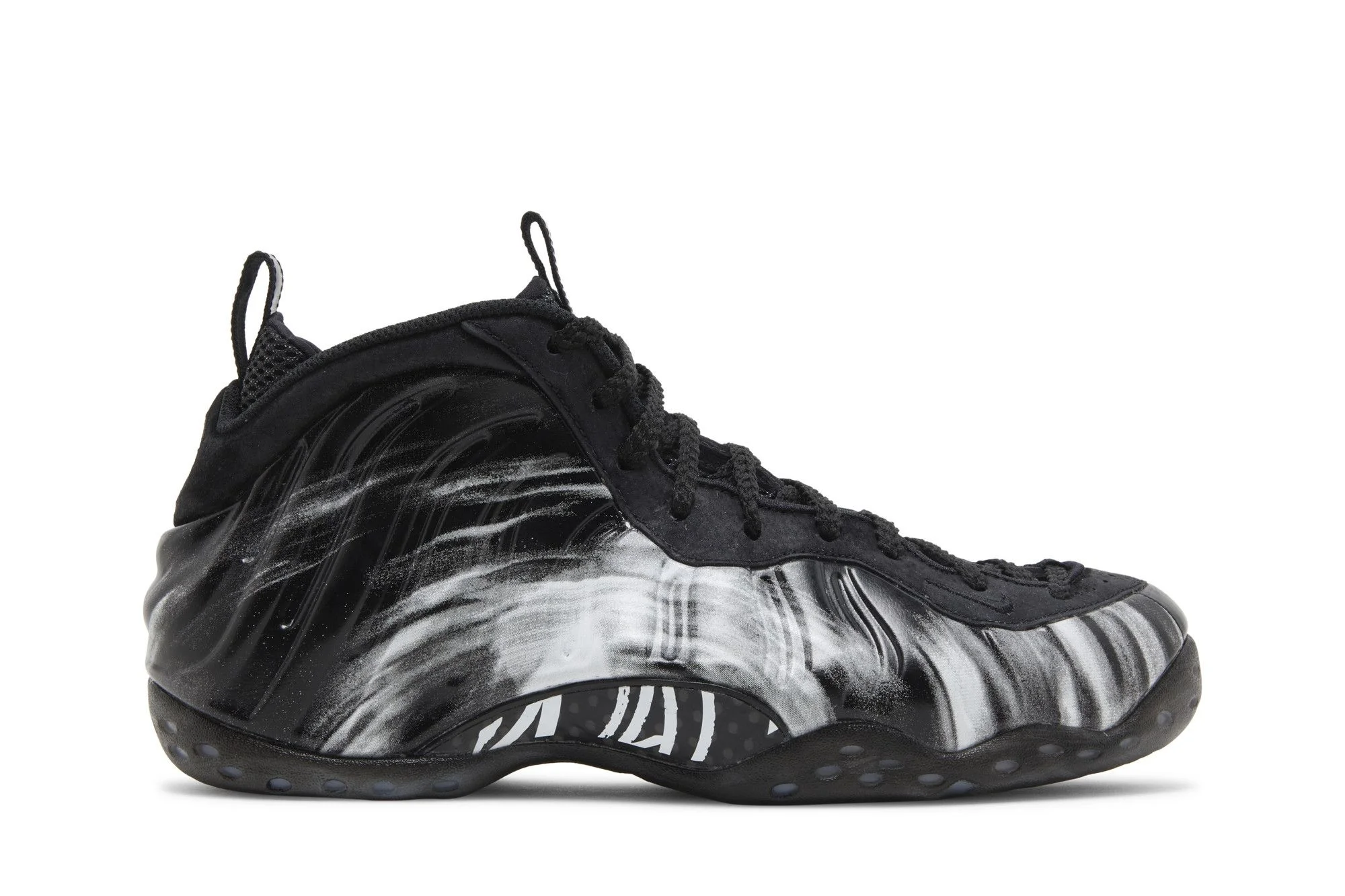 The Nike Air Foamposite One ‘Black’ is taken from the two-piece ‘Dream A World’ pack, featuring neutral colorways inspired by Roman philosopher Seneca. White brushstroke designs embellish the contrasting black upper, constructed from molded polyurethane with tonal suede construction throughout the collar and eyestay. Penny Hardaway’s 1 Cent logo is embroidered on the back heel, while custom insoles display a Seneca quote: ‘Luck/Success Happens When Preparation Meets Opportunity.’ Performance benefits full-length Zoom Air cushioning, a carbon fiber shank and a herringbone rubber outsole. UPPER MATERIAL Synthetic
